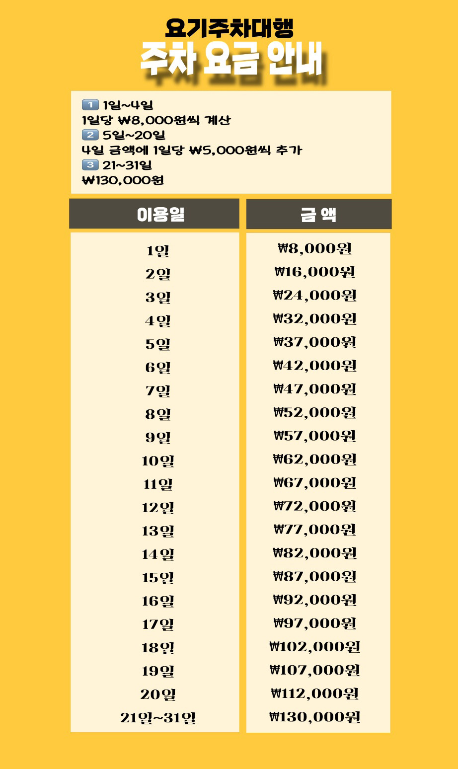주차요금 결제는 예약확정후 입금부탁드립니다